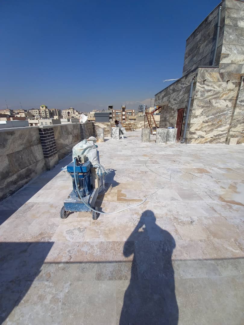 بعد از اتمام سنگسابی، نظافت سنگها هم رعایت شده و فاضلاب کفسابی نیز از روی کف پاک شده است.